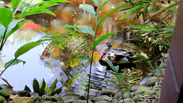 Um belo lago com cascata cheio de peixes, patos e muita tranquilidade.