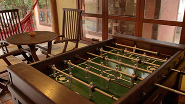 Salão de jogos, pebolim, tenis de mesa e xadrez.